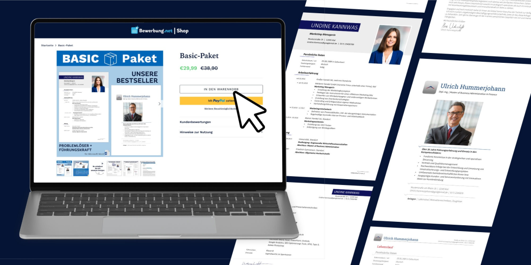 Solltest du dich mit allen aktuellen Anforderungen bestens auskennen und lieber selbst Hand anlegen wollen, findest du im Online-Shop von Bewerbung.net eine Vielzahl digitaler Produkte zur Unterstützung für deine Bewerbung: Bewerbungsdesigns, Mustervorlagen, Ratgeber und Leitfäden – alles jederzeit online verfügbar und stets zu fairen Preisen. Jede Bewerbungsvorlage enthält einen einzigartigen Mustertext, den du frei nach deinen Wünschen anpassen kannst.